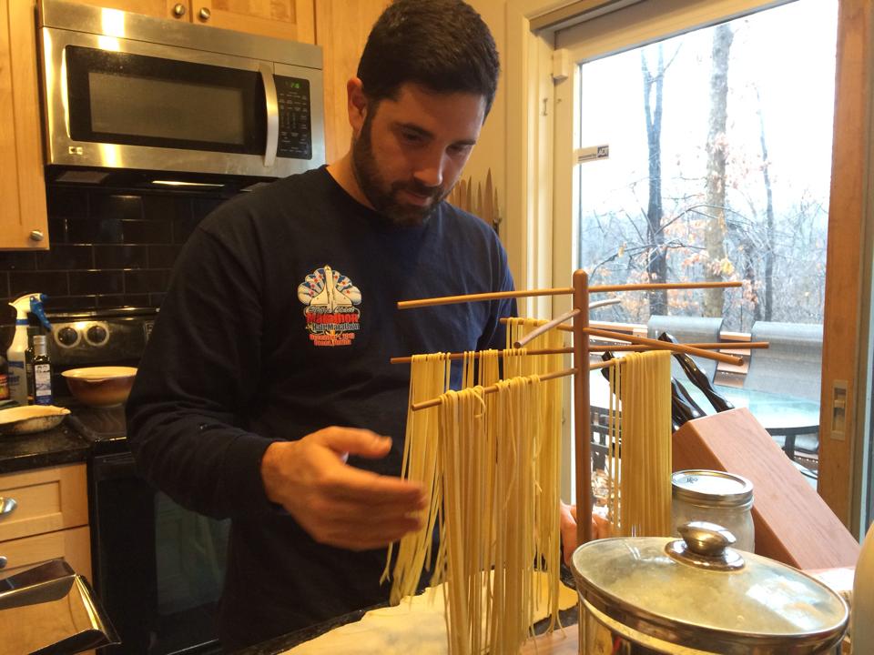 What better way to start off a series of diets that discourage the consumption of gluten and grains than by making pasta! It actually wasn’t my intention to do it on this sort of schedule. I had been planning on trying to make pasta for several years now, but in the past year I’ve just been getting more and more stoked about the idea. This led to a nice manual pasta maker and some other utensils showing up on my Amazon wish list. Thankfully I actually got these things for Christmas. The timing could be better of course, but I was determined to actually try my hand at making pasta before these items would be verboten for half a year. The results, in the end anyway, turned out amazing!