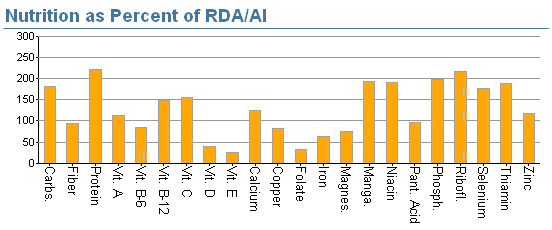 Macro-nutrient wise things aren’t going completely wrong. We are hitting just over 2000 calories a day, which will create a pretty good net calorie deficit for someone of this guy’s size. It’s a bit high in fat (about 122% over recommended levels) a bit higher in saturated fat (almost 150% recommended levels) but it’s actually lower in recommended total cholesterol levels (225 instead of 300). The macronutrient breakdown (carbs/fat/protein) is pretty high in carbs but he’s still getting a reasonable level of protein. For a weight of 250 pounds he would want at least 125 grams of protein. This is a little below that, but not a complete tragedy. Fiber is also pretty spot on. Okay, so far so good. It’s when we look at the micronutrients that things start going a bit awry.