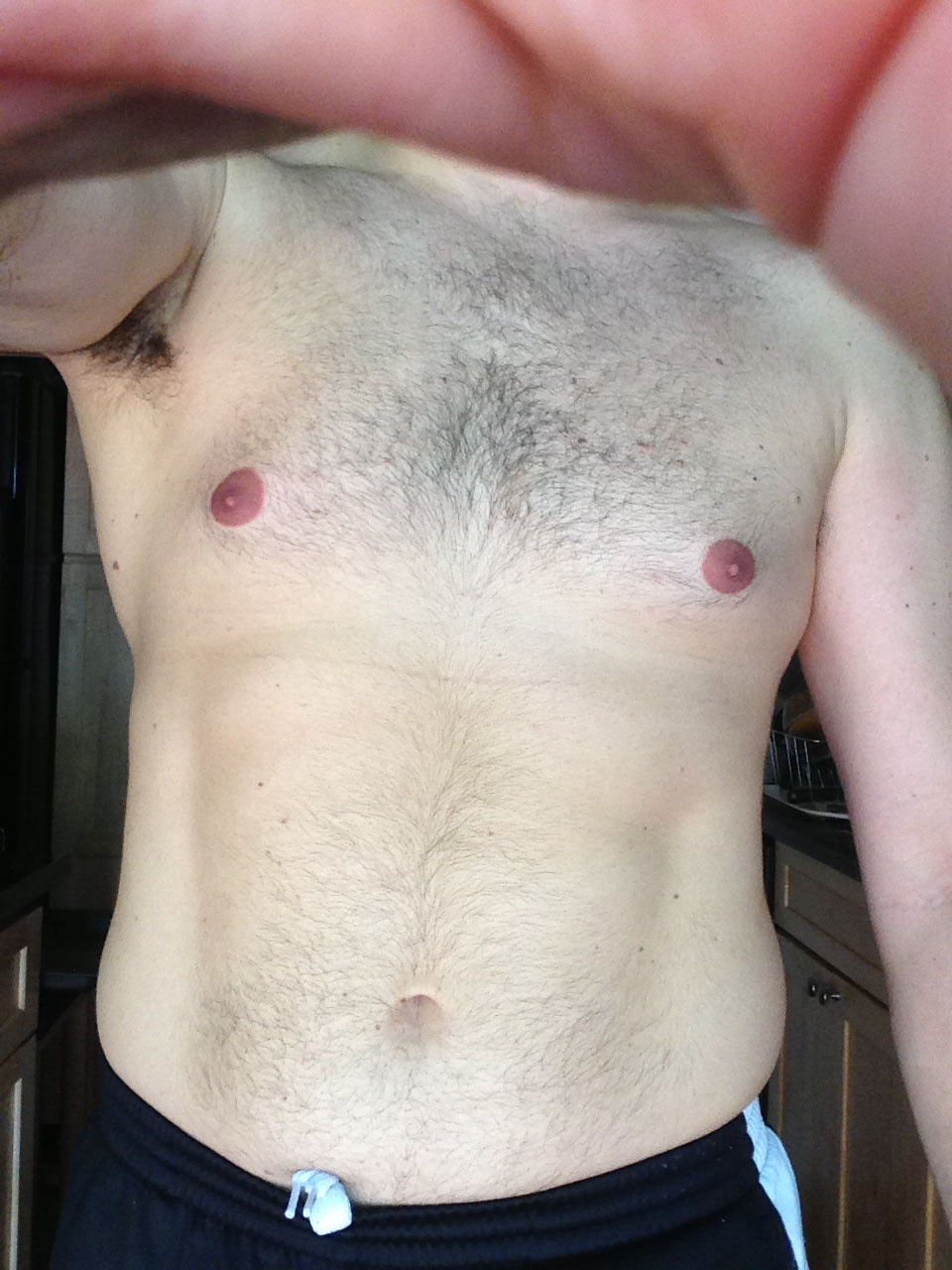 While there will be variation from person to person on fat distribution, from this you can get an idea of where you fall in the percentage body fat range. As a test case I used myself. Right now I’m between 16-17 percent body fat. If I look at the picture above I’d say I’m somewhere between 15 percent picture and the 20% picture. So, for me anyway, I think it works great. Despite my shyness in doing so, here is a picture of me from a couple months ago, in about the range I’m speaking of: