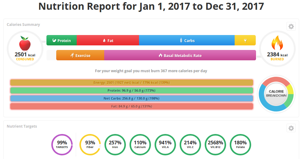 Just like last year I’m not setting an resolutions in this regard. I want to keep the status quo with respect to my tracking but I want to up my ante with respect to holding myself accountable each day. I firmly believe that looking at things from a daily or weekly perspective is better than some giant year long goal concept. If I had cleaved to the year long view then when I stumbled in early January I would have had every rationalization why I should wait to try again in the next year rather than doing so immediately. So how am I going to get things more dialed in in 2018?