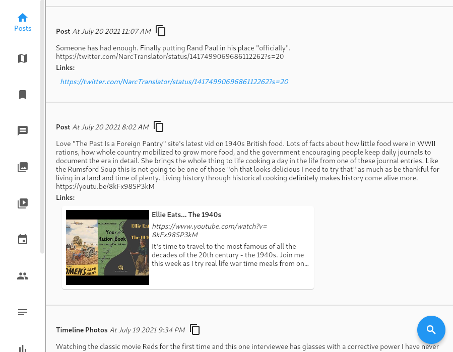 In the previous two releases links in posts were simply rendered as the URL of the link. This is obviously different than what we expect on modern user interfaces. What we expect nowadays is one of those little tiles with a preview image if it’s available, a headline, and maybe some body text. We then click on that which would bring us to the link. The magic of that most of the time is a standard called OpenGraph . This is some additional information that a website puts at the top of the HTML file that the link points to that gives hints to how an application could build a preview for its purposes. In this release Kyanite now reaches out to the server to generate that query and build that tile if it is available. If it isn’t available then it simply shows the URL like before. This will happen for links to other social media system posts like Twitter tweets because they actually don’t have a means for generating that data any longer. How do those tweets or Instagram links render in websites then? There is a whole JavaScript library that those sites link against to have it dynamically build that. Kyanite doesn’t have any of that so can’t use it. For links to regular websites though it works well. Below is a screenshot showing what the link preview looks like both when it can’t find it (the Twitter link) and when it can (the foodie link):