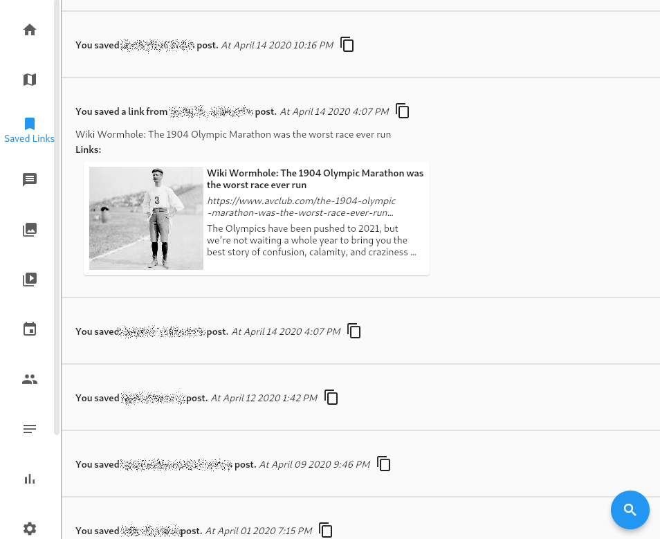 Facebook has a mechanism for saving posts or links that you like for future browsing. That data can be exported with your archive. It provides basic information about the link, when you saved it, and the hyperlink if it is to an external system. Most of the data is lost when the link is to another Facebook post or media item. So unfortunately for those things the best you’ll get back is something like “You saved John Smith’s post” and the time that you did. For external links though you’ll get more information and using the new link preview feature a standard preview if it is available too: